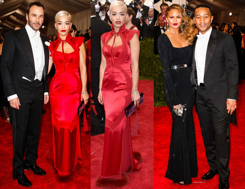 A slightly unlikely pair, mega-Designer Tom Ford (one of my all time favorites) took Rita Ora as his date to the Met Gala in a fiery Asian inspired gown with many a signature Tom Ford elements; velvet, tassels, a keyhole body con silhouette, bows, and fur trim. While a nod to the theme and culture, it’s bordering on that whole sexed up Chinese Female thing that can be culturally offensive.