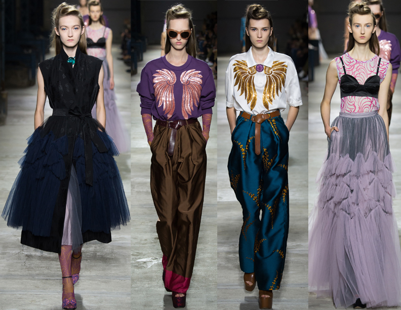 Every time new collections are upon us I cannot wait to see what Dries comes up with. His colors, cuts, and general styling of each look is like no one else and always keeps things interesting. This time we got insanely rich jewel tones, 40’s influence in hair and trousers, and weird Gothic-y prom Realness with tulle and petticoats. So. Much. Yes.